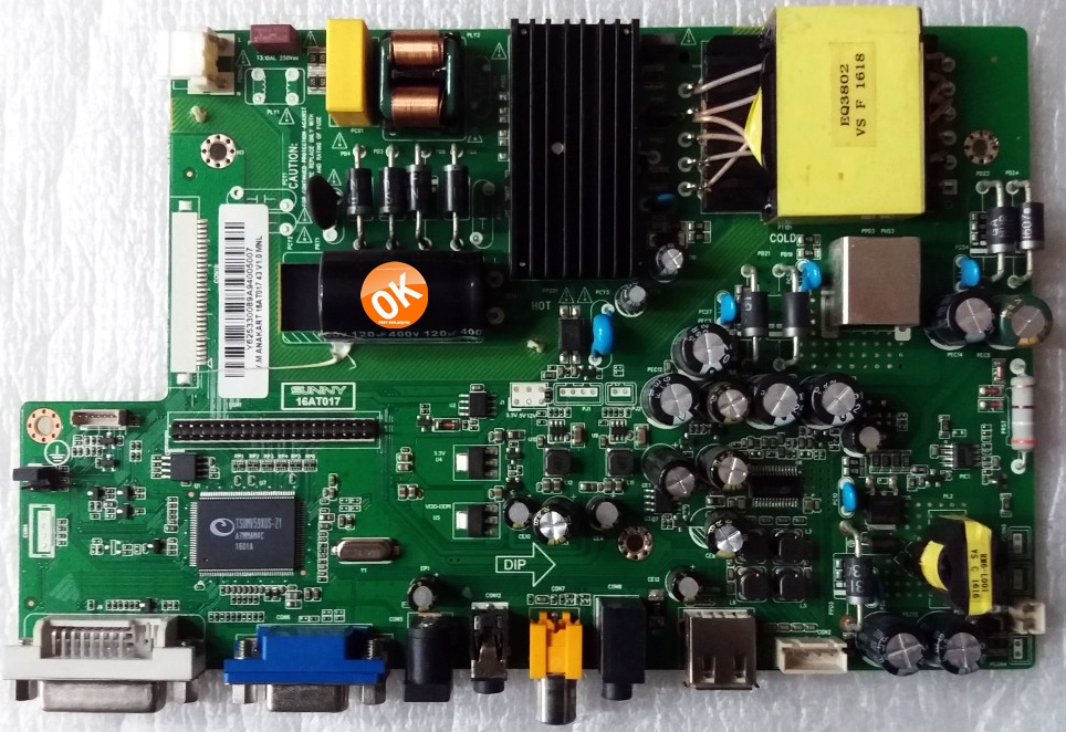 Ürün hurdaya çıkmış televizyondan uzman personelimiz tarafından itinayla sökülmüş ve paketlenmiştir, Ana Kart/Main Board, Sunny 16AT017 43V1.0 MNL , Axen , AX043DLD16AT017 , LC430DUY çalışır durumda olduğu kontrol edilmiş ve testlerden başarıyla geçmiştir.