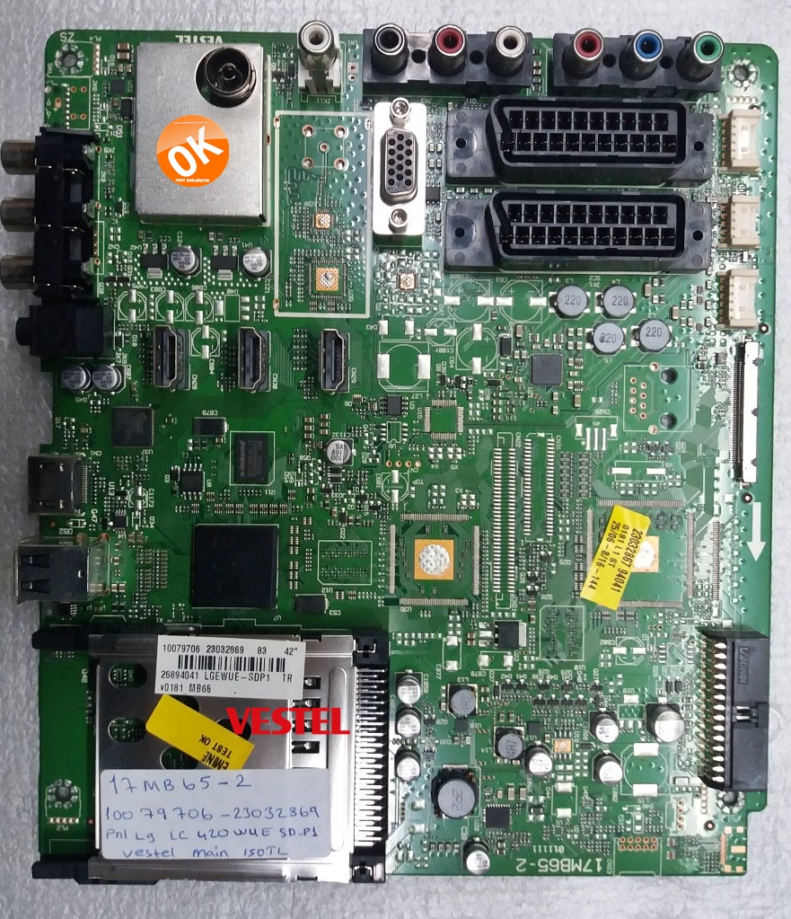 Ürün hurdaya çıkmış televizyondan uzman personelimiz tarafından itinayla sökülmüş ve paketlenmiştir, VESTEL Anakart 17MB65-2,23032867,23032869 , 20579682 , LGEWUE-SDP1 çalışır durumda olduğu kontrol edilmiş ve testlerden başarıyla geçmiştir.