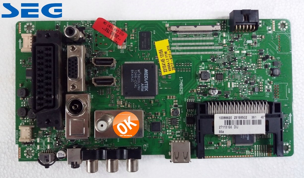 Ürün hurdaya çıkmış televizyondan uzman personelimiz tarafından itinayla sökülmüş ve paketlenmiştir, Ana Kart/Main Board, Regal 23168502, 23154145, 17MB82S , SEG 40 40180B MAIN BOARD çalışır durumda olduğu kontrol edilmiş ve testlerden başarıyla geçmiştir.